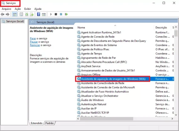 3: a janela Serviços será aberta. Role para baixo e localize Windows Image Acquisition/Assistente de aquisição de imagens do Windows ou WIA.