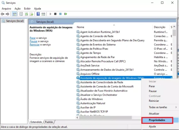 Esta é uma correção simples para o erro do scanner WIA, executada a partir do painel Windows Image Acquisition Service.