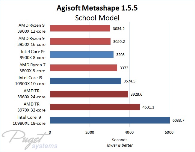 Agisoft Metashape CPU performance: Intel Core X-10000 vs AMD Threadripper 3rd Gen