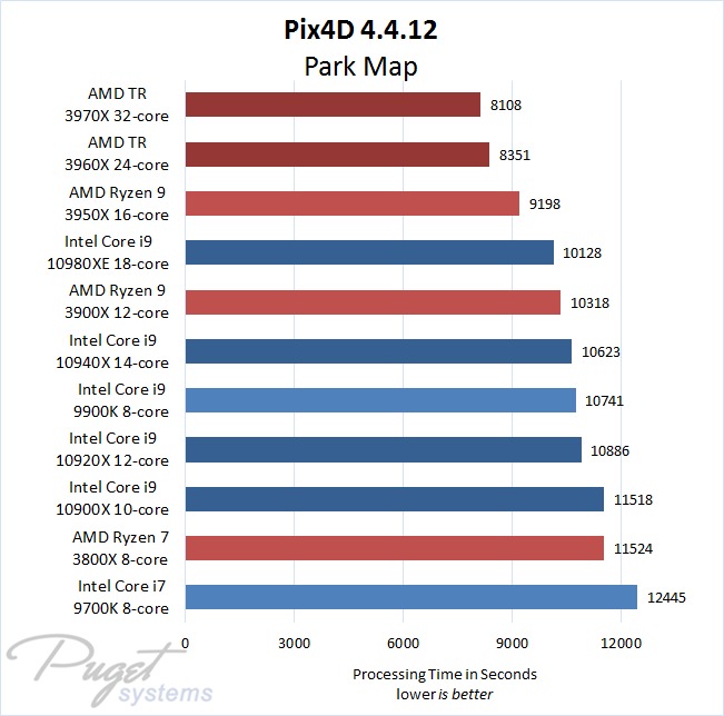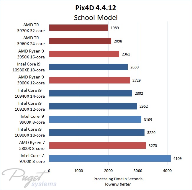 Pix4D CPU Performance: Intel Core X-10000 vs AMD Threadripper 3rd Gen