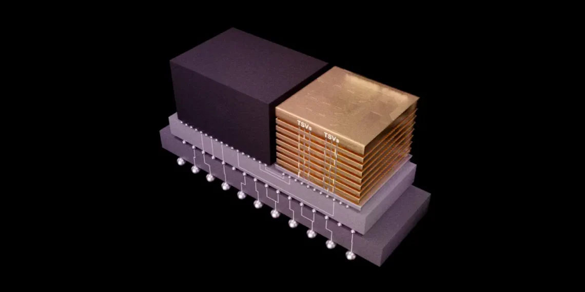 A arquitetura da memória HBM é baseada em pilhas de chips DRAM empilhadas verticalmente, com até 8 dies (camadas) em uma única estrutura. Nesse meio tempo, essas pilhas, ficam posicionadas em um interposer de silício, uma base intermediária que conecta a GPU e a memória com um caminho de comunicação muito mais curto e eficiente.