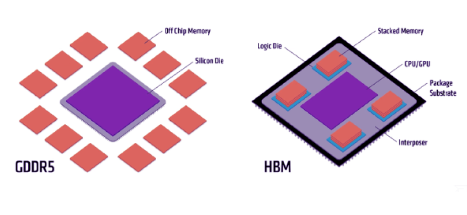 Lançada em 2013, a HBM1 marcou uma ruptura com as memórias GDDR tradicionais, ao oferecer uma arquitetura empilhada verticalmente (3D), interligada através de TSVs (vias de silício) e interposers de silício.